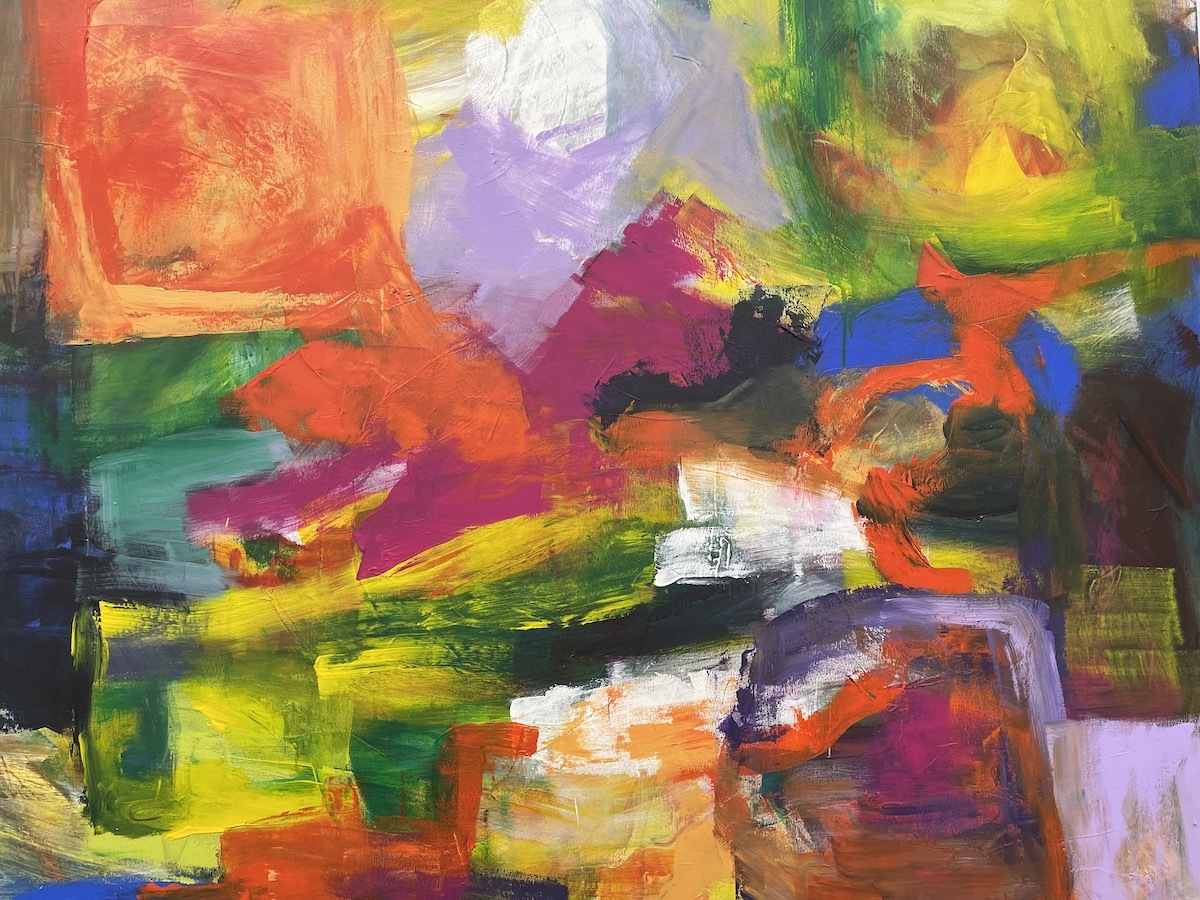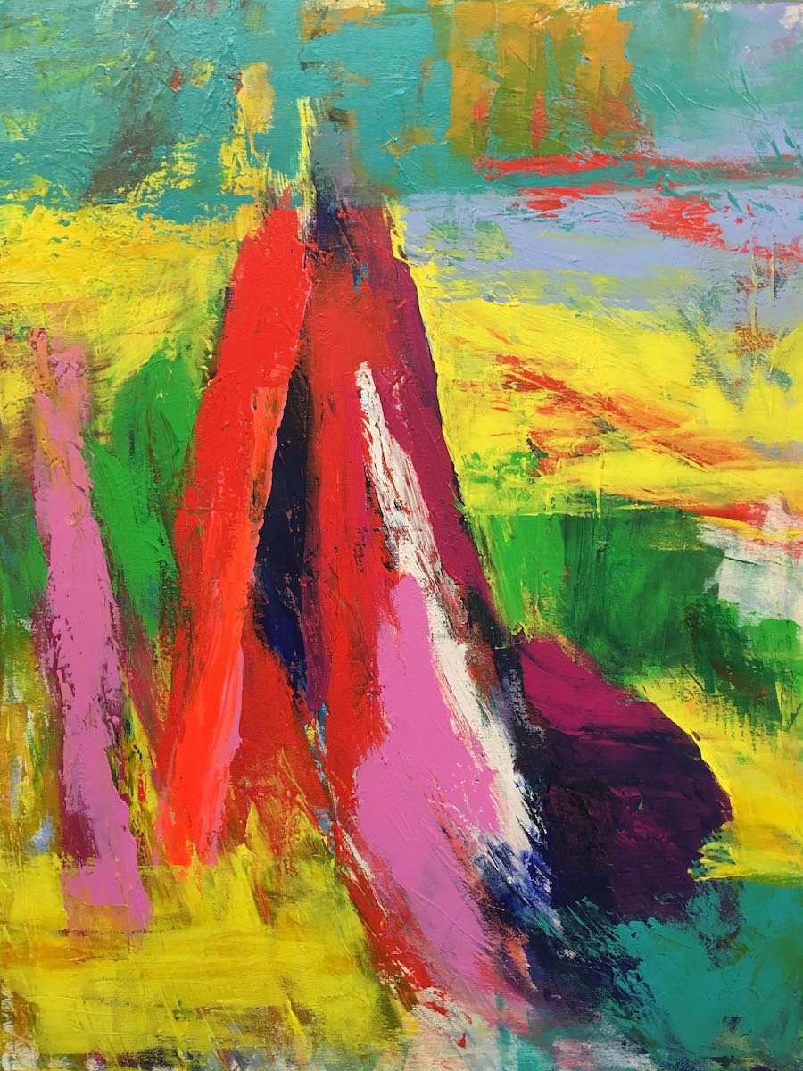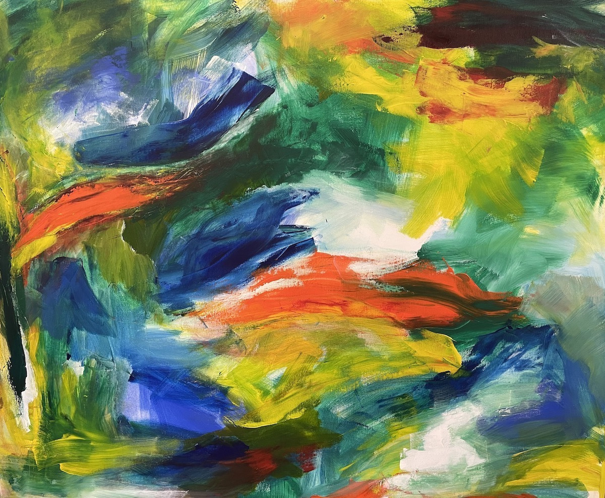 Farbmalerei kann auch ein Spiel sein zwischen Farbe und Raum, zwischen den einzelnen Farben. Ein Spiel, ein Hin-und-Her, das sich zwischen Ruhe und Dynamik bewegt, zwischen der Illusion eines Bildraums, dem Eindruck von Ruhe oder einer Ahnung von Landschaft.